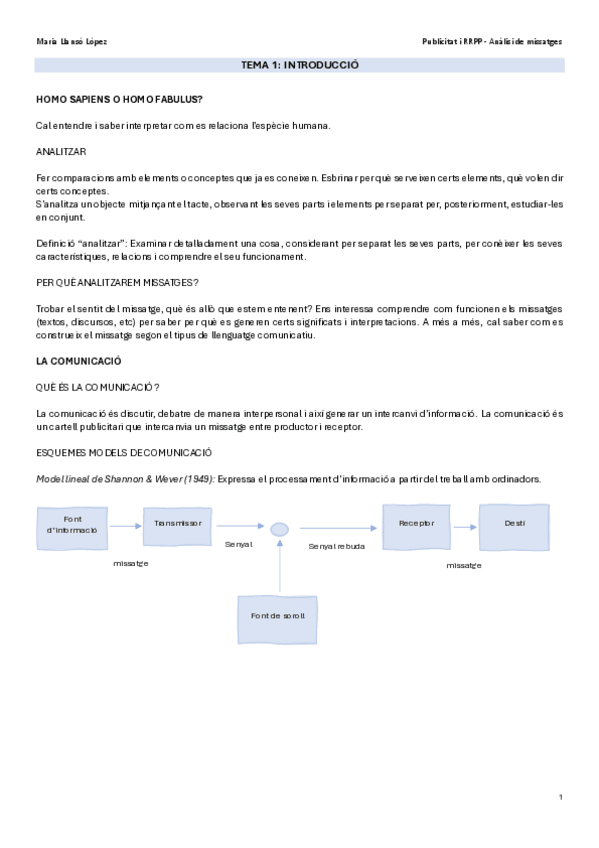 He publicado nuevos apuntes de 1º Anàlisi de Missatges: SETMANA 1