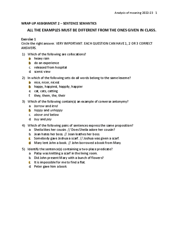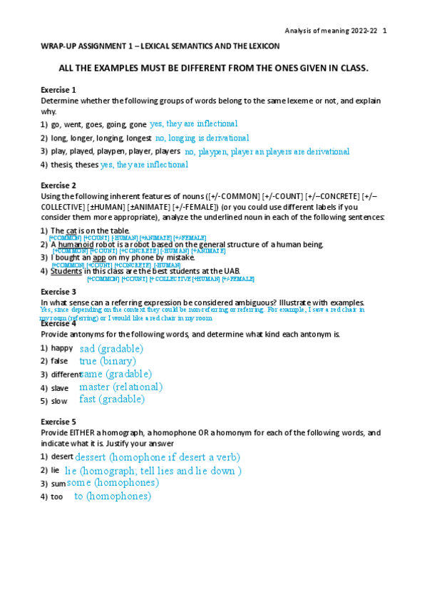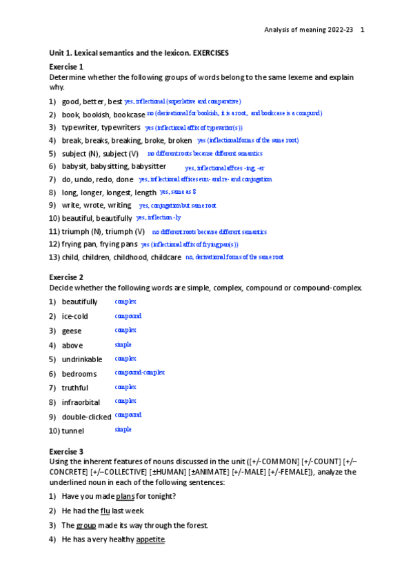 He publicado nuevos ejercicios de 2º Anàlisi del Significat en Anglès: lexicon and semantics