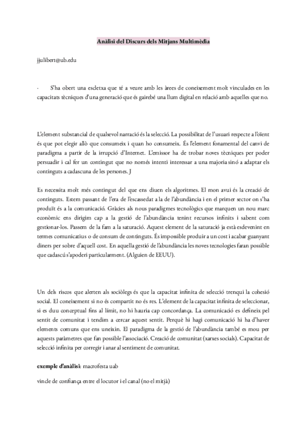 He publicado nuevos apuntes de 3º Anàlisi dels Discursos dels Mitjans de Comunicació: Analisi-del-Discurs-dels-Mitjans-de-Comunicacio.pdf