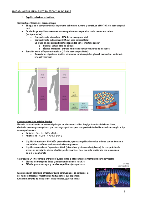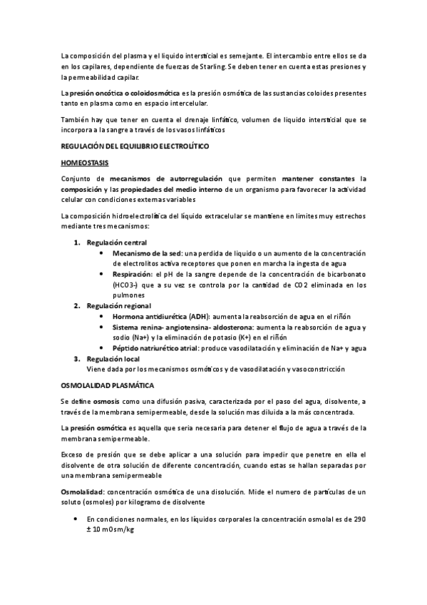 - Agua corporal - Composición iónica de los fluidos -Regulación del equilibrio electrostático - Osmolalidad plasmática - Electrolitos - Estudio de la oxigenación - Equilibrio ácido-base