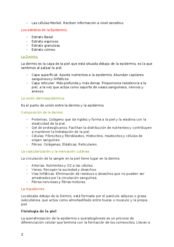 Tema 1: Estructura y funciones del órgano cutáneo.