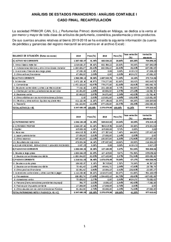He publicado nuevos apuntes de 3º Análisis Contable I: CASO PRIMOR test y preguntas cortas SOLUCIÓN profesora.pdf