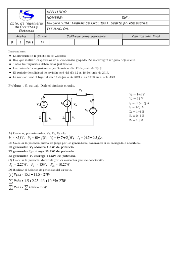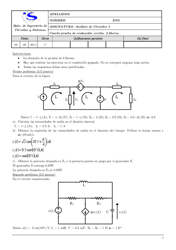 He publicado nuevos examenes de 1º Analisis de Circuitos I: Exámenes resueltos-Análisis Circuitos I