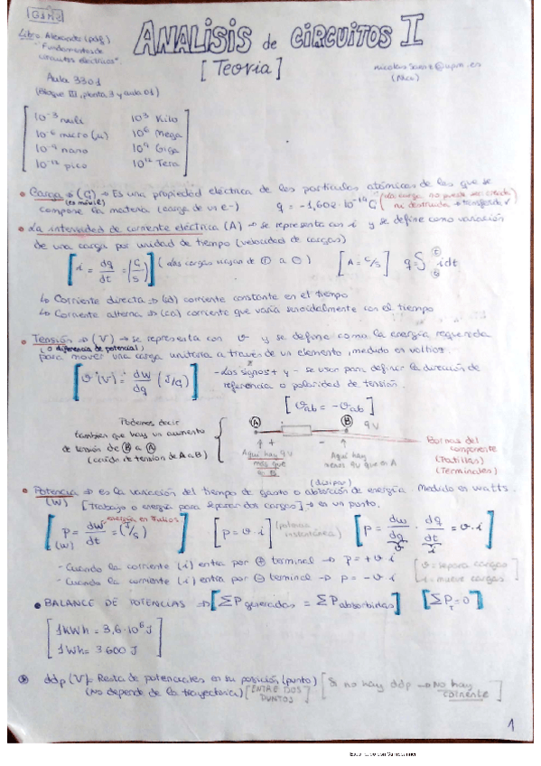 He publicado nuevos apuntes de 1º Analisis de Circuitos I: Análisis I TEORÍA LAB
