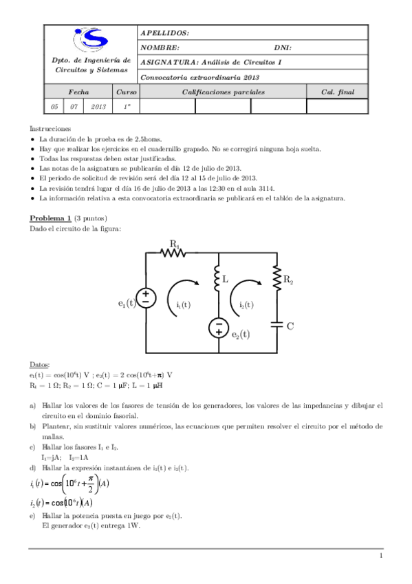 He publicado nuevos examenes de 1º Analisis de Circuitos I: examenes