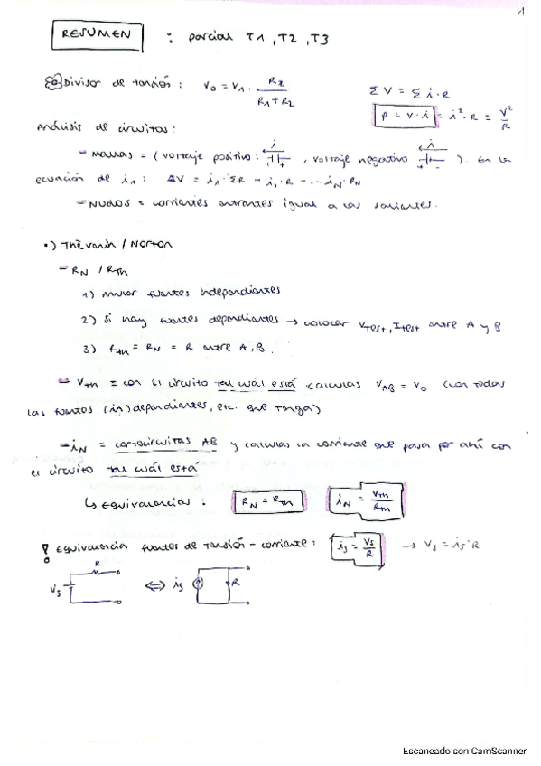 Teoría Analisis de Circuitos Resumida