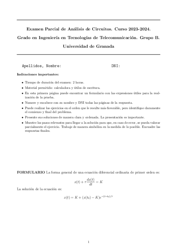 INICIO DE CURSO ANÁLISIS DE CIRCUITOS GRADO EN TELECOMUNICACIONES. Academia Universitaria. Clases en grupos reducidos y particulares. Clases presenciales y online. Resolución de todos tus ejercicios y exámenes anteriores. UNIVERSIDAD DE GRANADA.