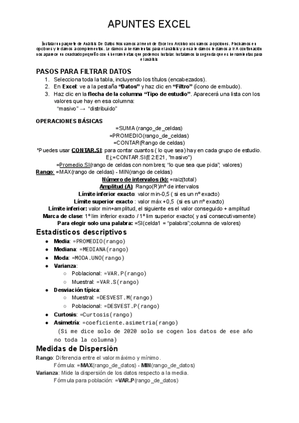 Apuntes excel (NOTA: 8,4)