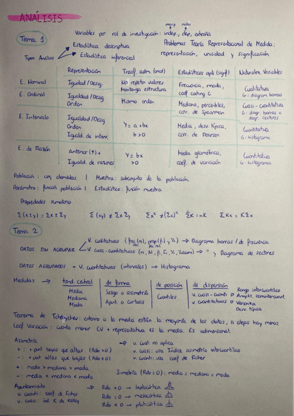 Análisis de datos I (Nota: 9) (Compara los apuntes con el profesor y haz tipo test :)