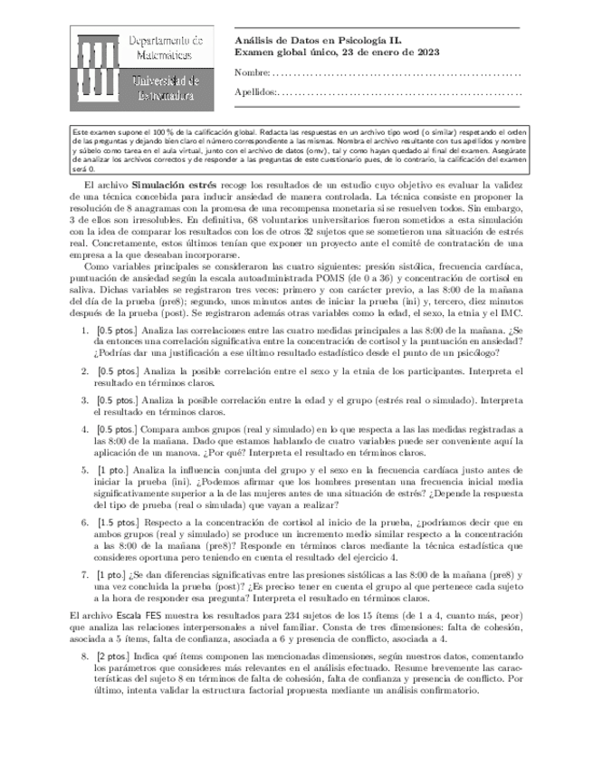 He publicado nuevos examenes de 2º Analisis de Datos en Psicologia II: T2-Y-T3EXAMEN-Psico2-22-23-RESUELTO.pdf