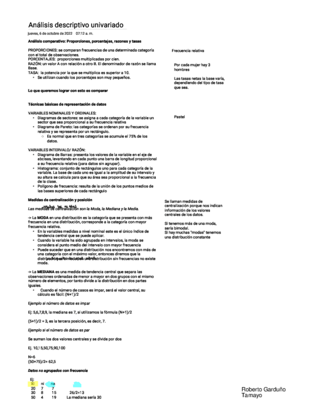 Apuntes de la parte de Análisis Descriptivo Univariado y Análisis Bivariado