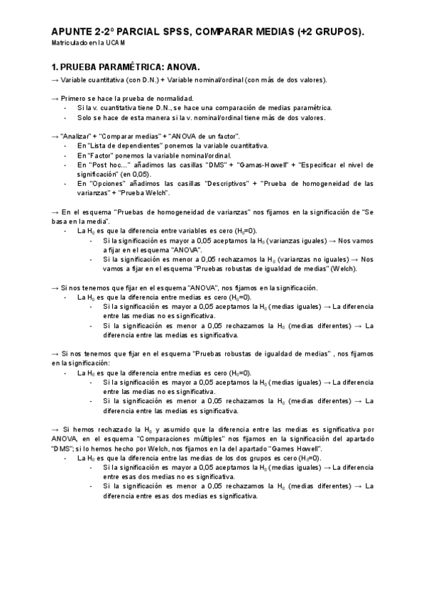 He publicado nuevos apuntes de 2º Análisis de Datos: Comparar Medias (+2 grupos), 2º Parcial SPSS.pdf