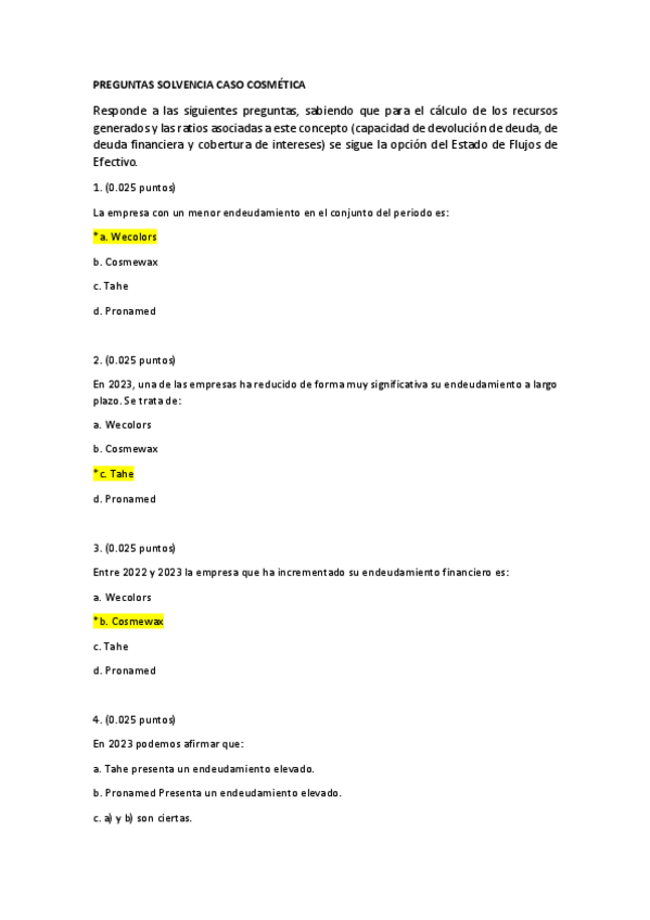 Preguntas y respuestas de la prueba final (caso cosmética)