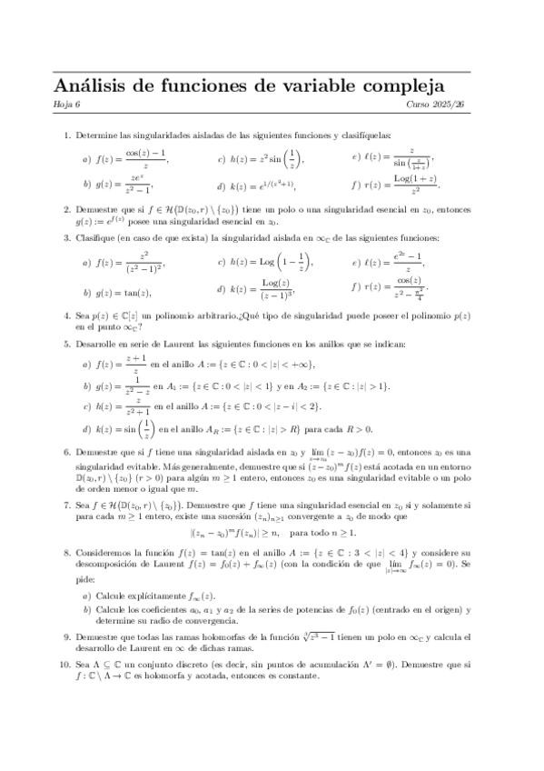 He publicado nuevos ejercicios de 3º Análisis de Funciones de Variable Compleja: Hoja-6.pdf