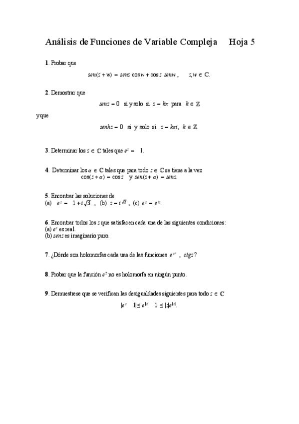He publicado nuevos ejercicios de 3º Análisis de Funciones de Variable Compleja: Hoja-5.pdf