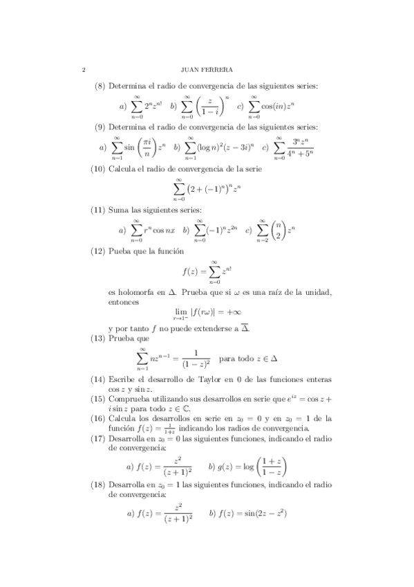 He publicado nuevos ejercicios de 3º Análisis de Funciones de Variable Compleja: AFVC Monsalve