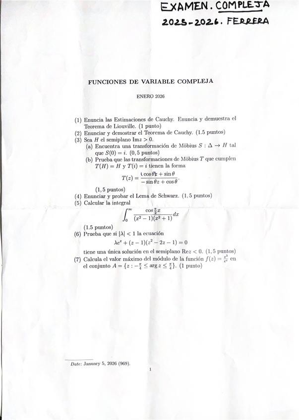He publicado nuevos examenes de 3º Análisis de Funciones de Variable Compleja: Examen-Enero-2026.-Juan-Ferrera.pdf