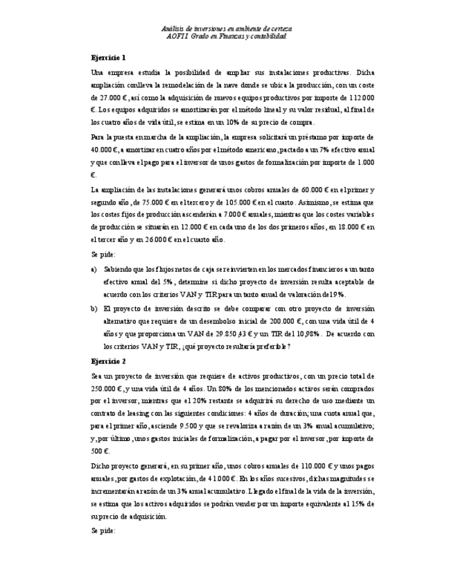 He publicado nuevos examenes de 3º Análisis de Operaciones Financieras e Inversiones II: Examen.pdf