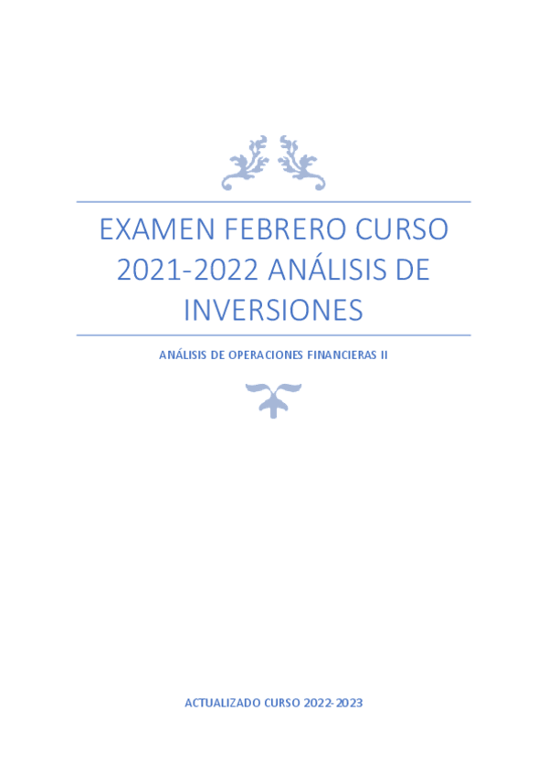 He publicado nuevos examenes de 3º Análisis de Operaciones Financieras e Inversiones II: Resolución Examen Febrero 2022.pdf