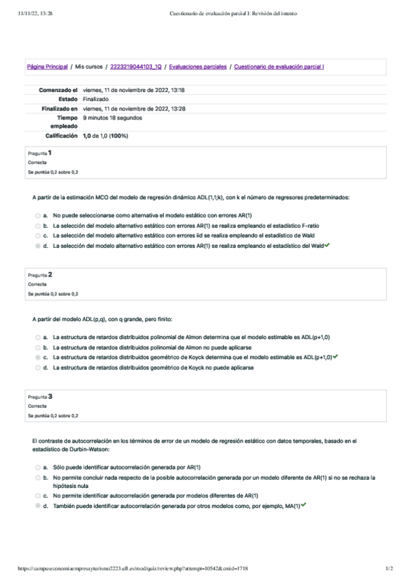 He publicado nuevos examenes de 4º Análisis de Series Temporales Económicas: Cuestionario 1