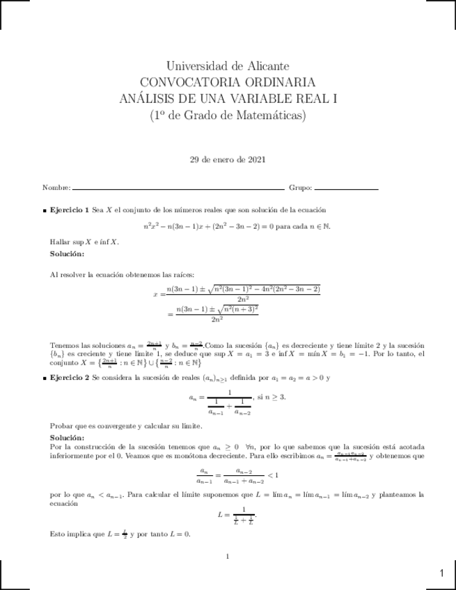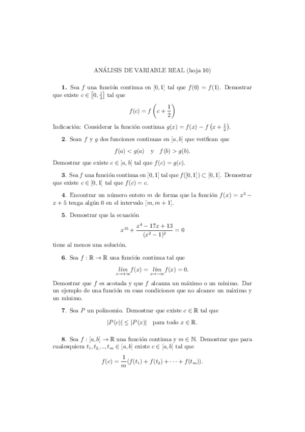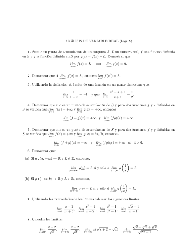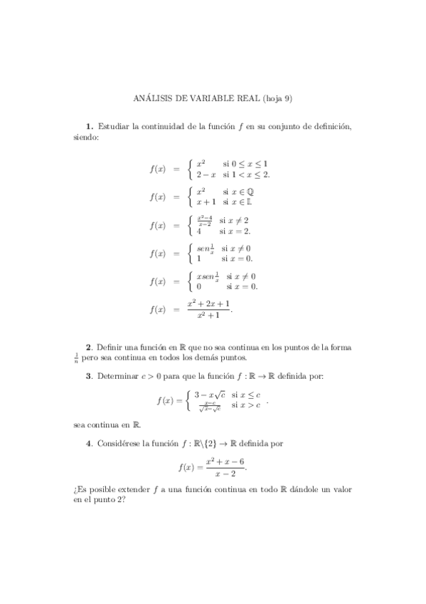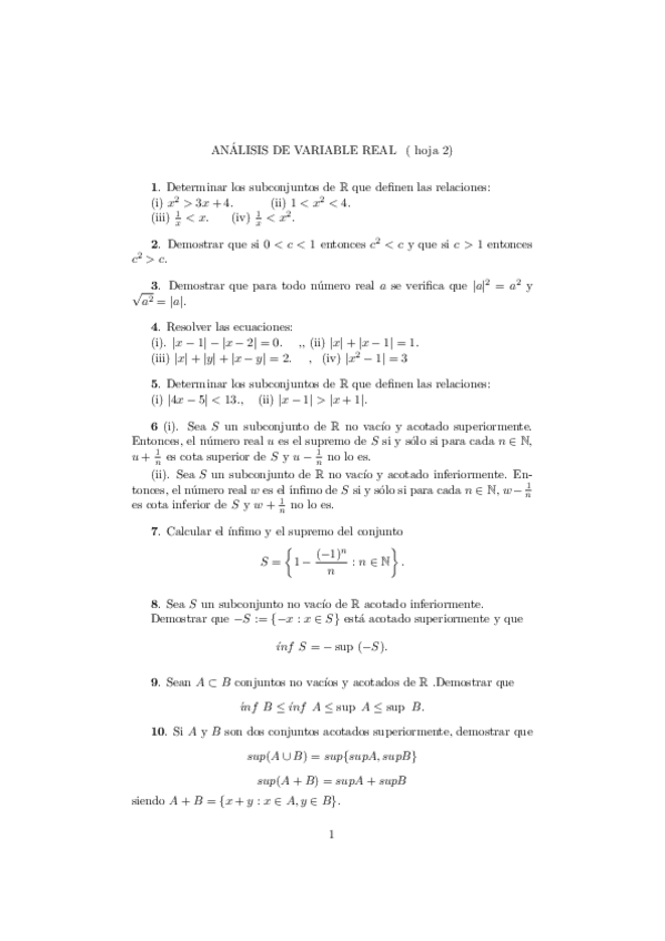 Hojas de ejercicios resueltas. Análisis. Cembranos y Mendoza