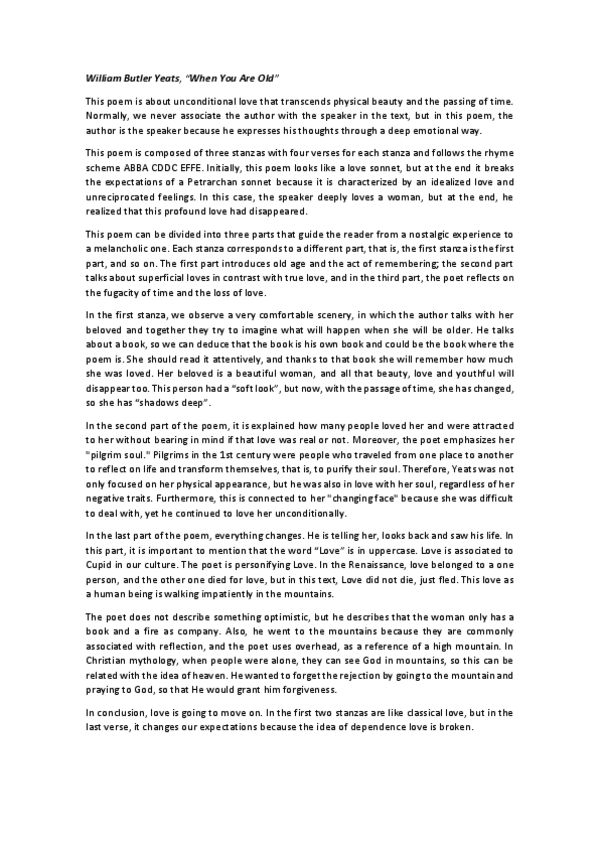 He publicado nuevos apuntes de 2º Análisis del Discurso y Literatura en Lengua Inglesa: When-you-are-old.pdf