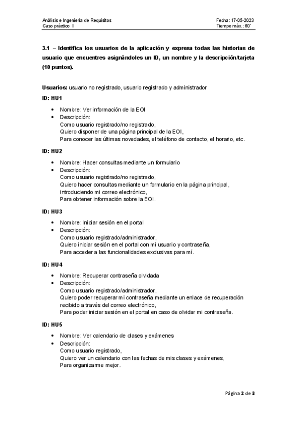 He publicado nuevos examenes de 2º Análisis e Ingeniería de Requisitos: 21-22-MayoCaso-practico-1.pdf