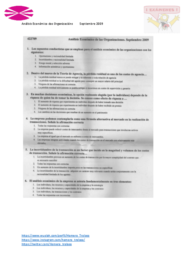 He publicado nuevos examenes de 3º Análisis Económico de las Organizaciones: Examen septiembre 2009 AEO.pdf