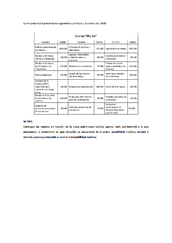 Supuestos. Análisis situación empresa