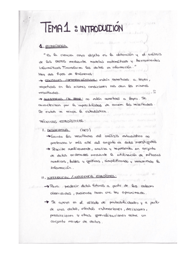 UPV 1º CURSO GCiencia Datos PDF AED APUNTES T1 Y T2 HECHOS A MANO