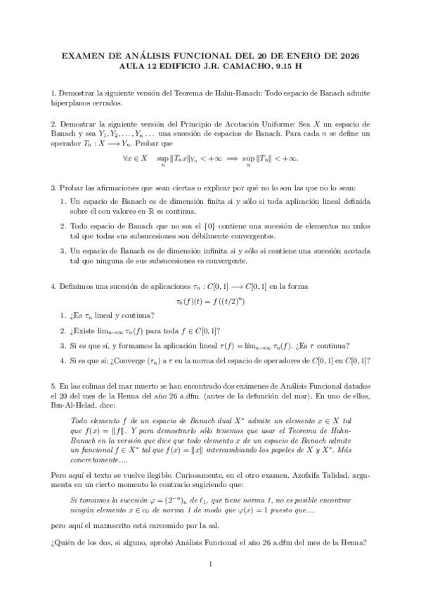 He publicado nuevos examenes de 4º Análisis Funcional: Exámenes 2025/26