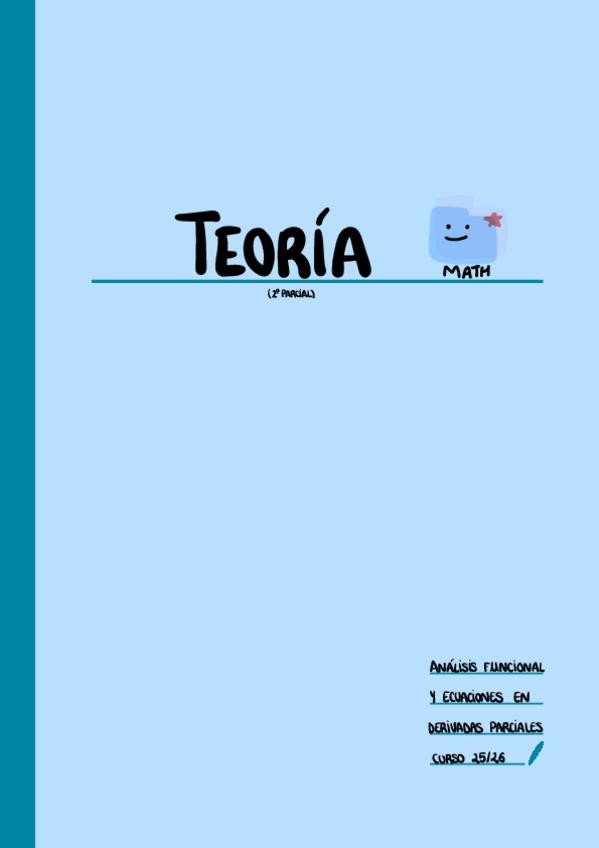 He publicado nuevos apuntes de 4º Análisis Funcional y Ecuaciones en Derivadas Parciales: teoria2Parcial.pdf