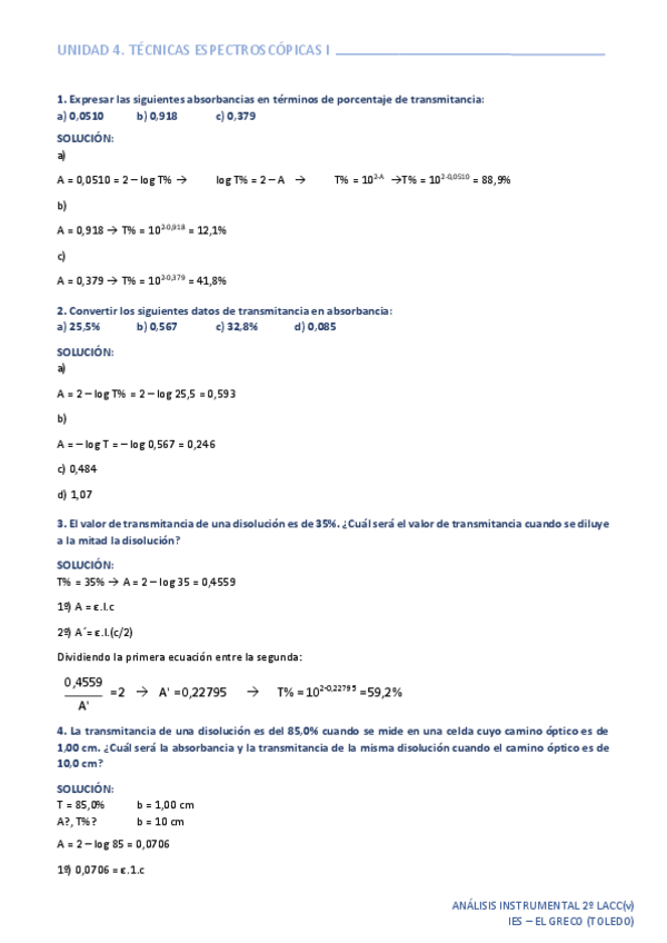 He publicado nuevos ejercicios de Análisis Instrumental: Problemas-U4Tecnicas-Espectroscopicas-I.pdf