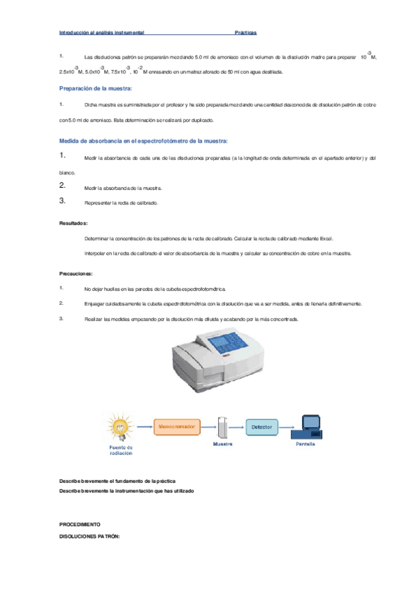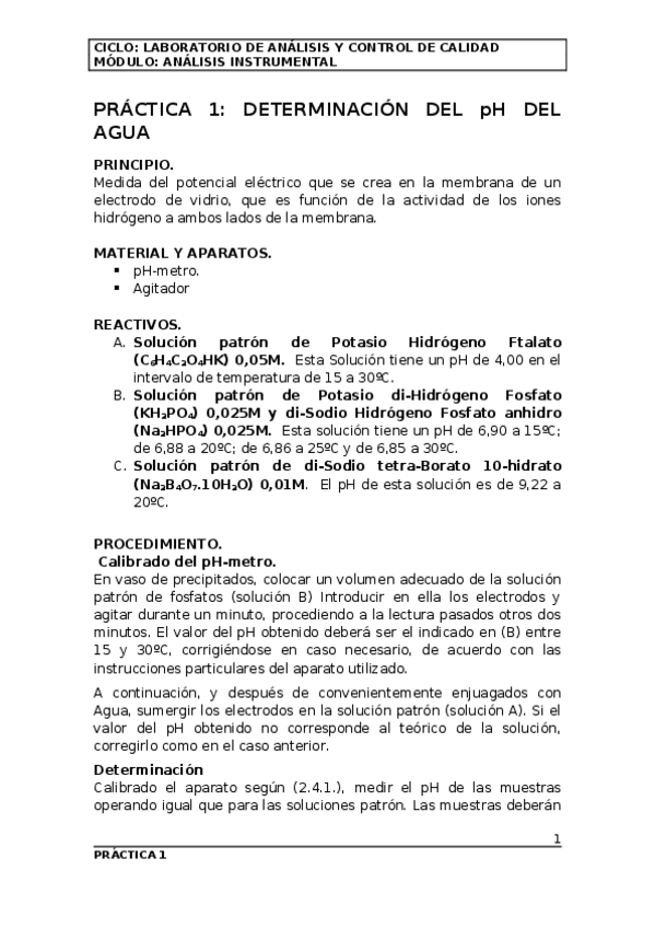 Practicas de la asignatura de Análisis Instrumental grado superior laboratorio y control de calidad