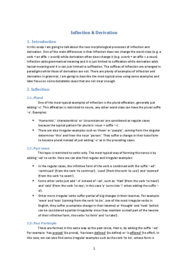 1. Inflection vs derivation