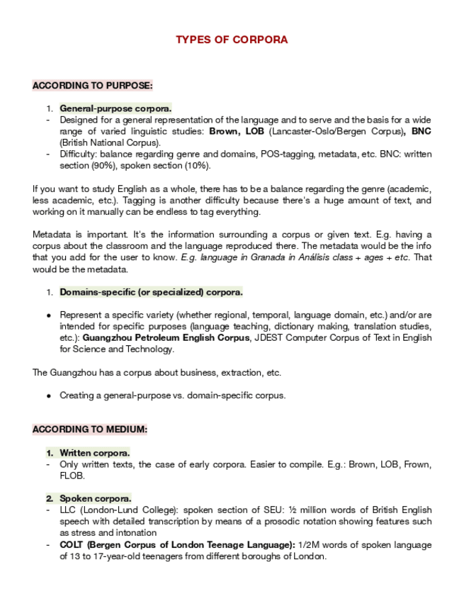 He publicado nuevos apuntes de 3º Análisis Lingüístico de la Lengua Inglesa Ii: Lingüística de Corpus: Types-of-Corpora.pdf