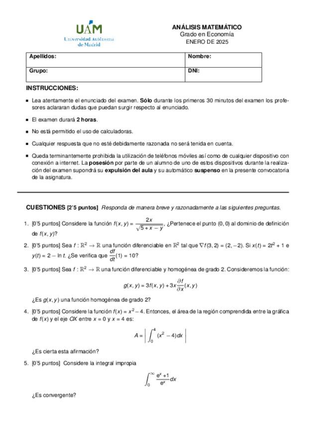 He publicado nuevos examenes de 1º Análisis Matemático: Enero2025SOLUCIONADO.pdf