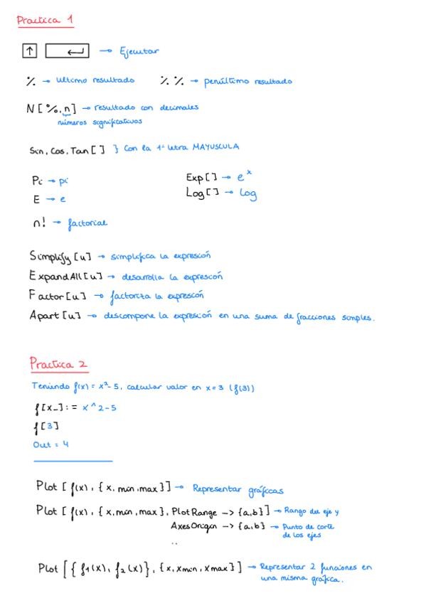 resumen y guia con explicaciones y ejemplos de como usar wolfram Mathematica pensado para 1º de carrera de Analisis Matematico
