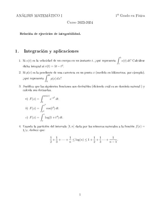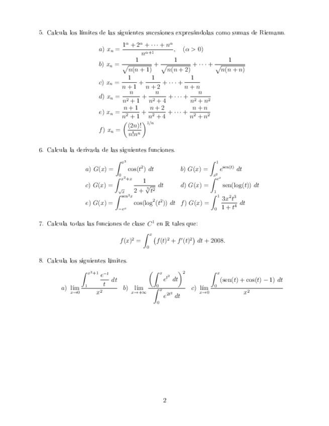 He publicado nuevos ejercicios de 1º Análisis Matemático I: Relacion-8.-Integrales.pdf