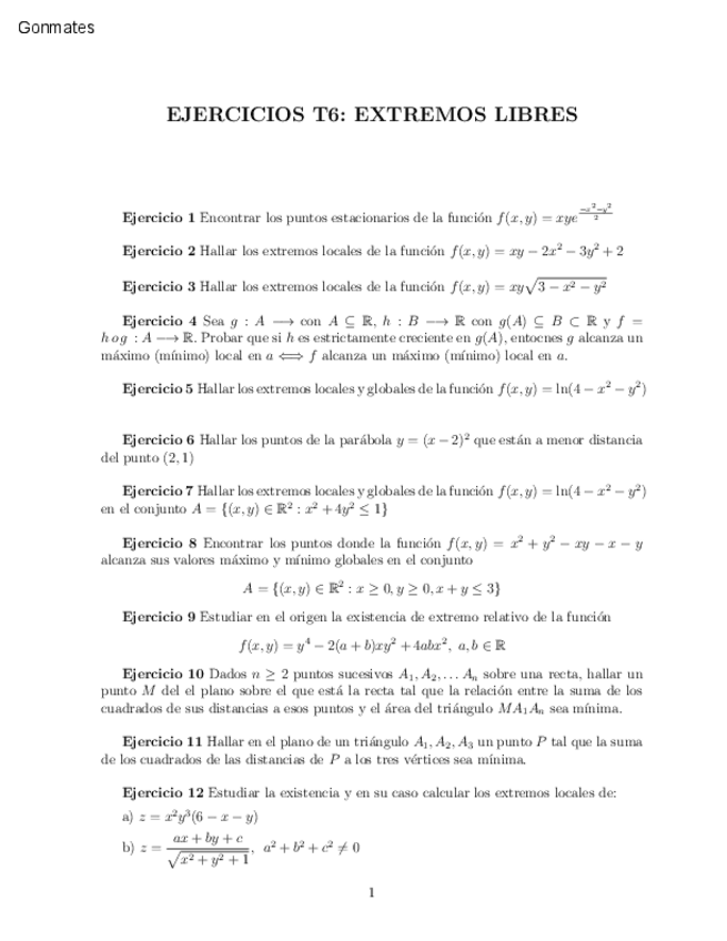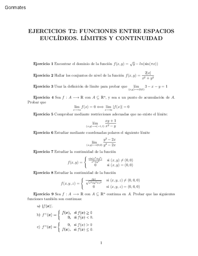 He publicado nuevos ejercicios de 2º Análisis Matemático I: Ejercicios Análisis multivariable