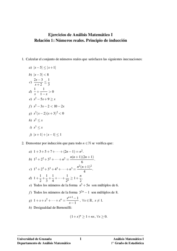 INICIO DE CURSO EN ANÁLISIS MATEMÁTICO I GRADO EN ESTADÍSTICA