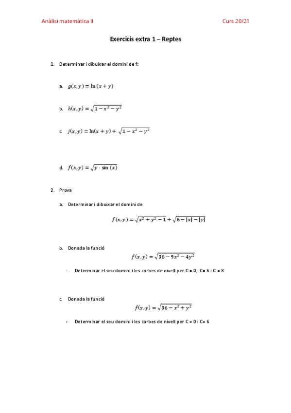 He publicado nuevos ejercicios de 1º Análisis Matemático II: grafiques2.pdf