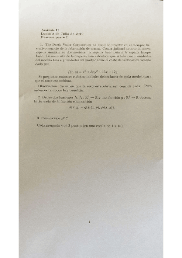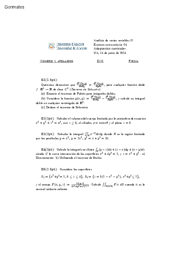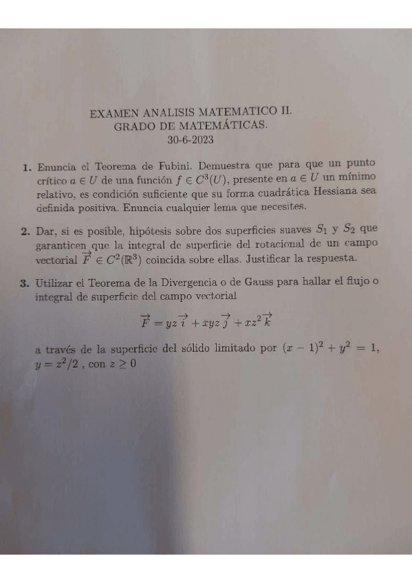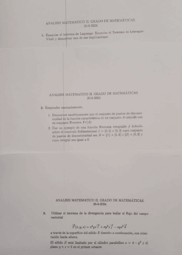 Examen realizado el 23 de junio de 2025 en la asignatura de Análisis II.
