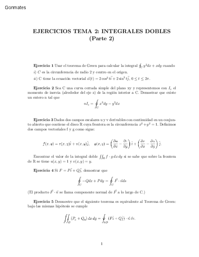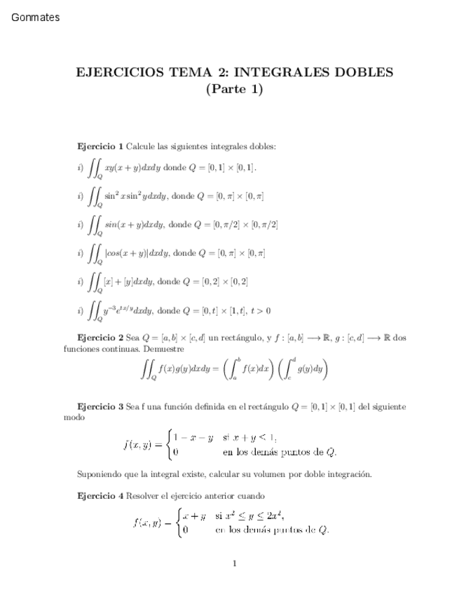 En este archivo se encuentran ejercicios de análisis II, primero separados y luego ejercicios variados