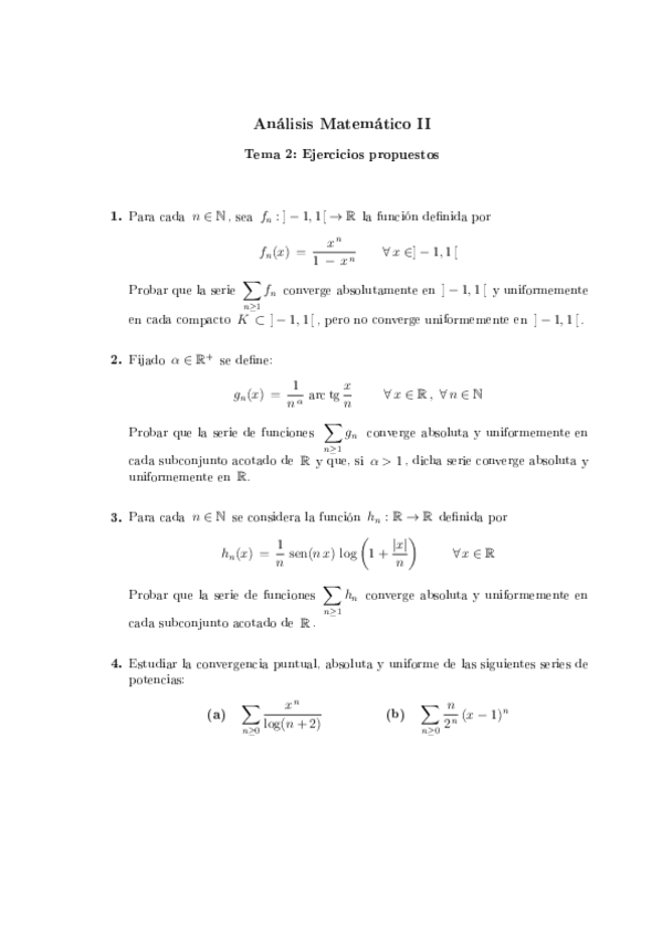 He publicado nuevos ejercicios de 2º Análisis Matemático II: Sucesiones y Series de Funciones