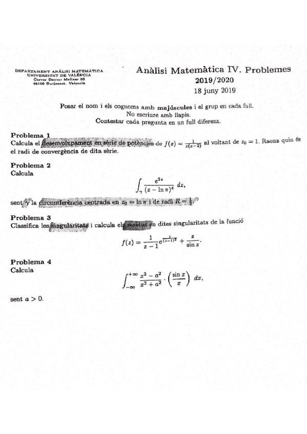 He publicado nuevos examenes de 4º Análisis Matemático Iv: Enunciados Exàmenes