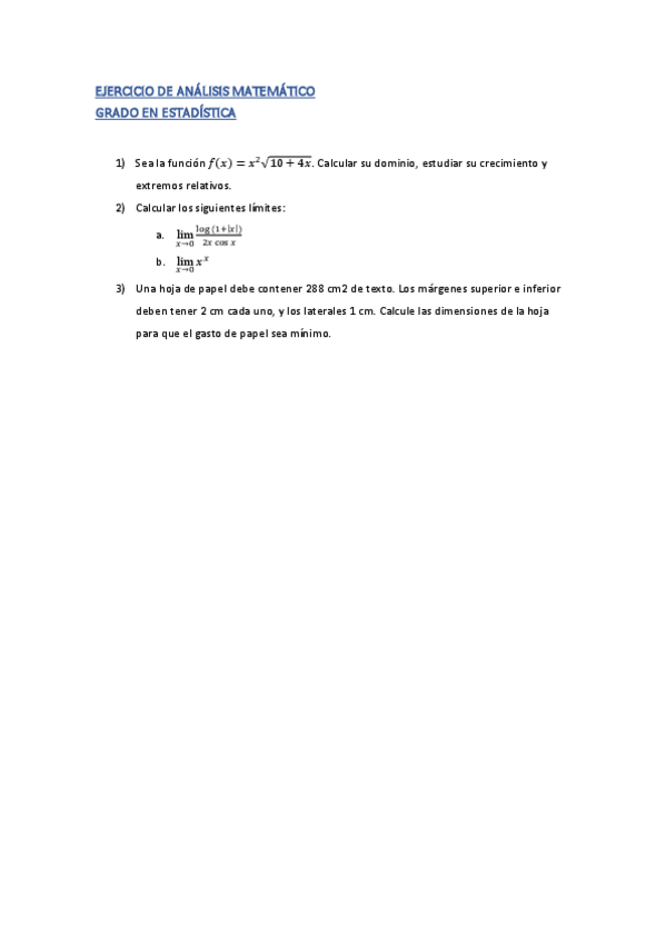 He publicado nuevos ejercicios de 1º Análisis Matemático: EJERCICIOS-RESUELTOS-LIMITES-Y-FUNCIONES.pdf