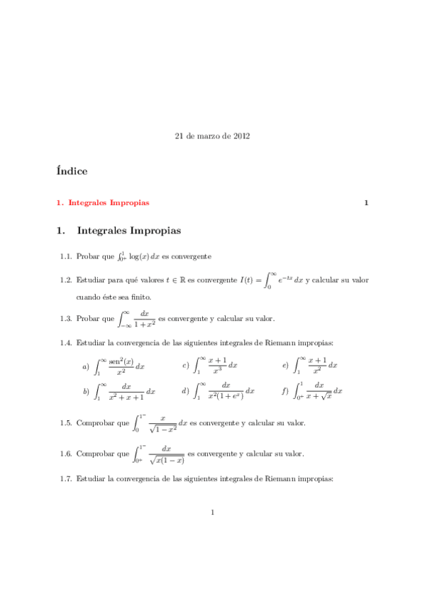 He publicado nuevos ejercicios de 1º Análisis Matemático: Integrales-Impropias.pdf