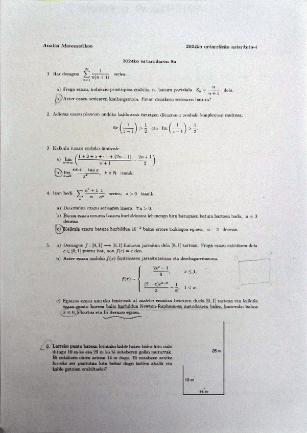 He publicado nuevos examenes de 1º Análisis Matemático: Azterketak