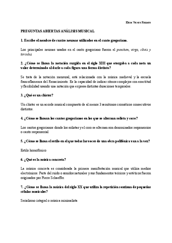 Preguntas abiertas con sus correspondientes respuestas, de las orientaciones de selectividad de Análisis Musical II (Andalucía)